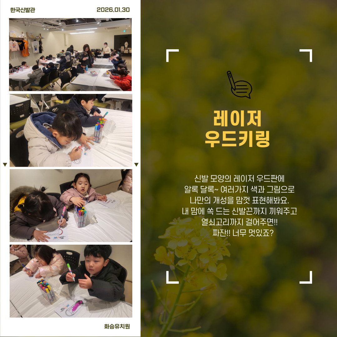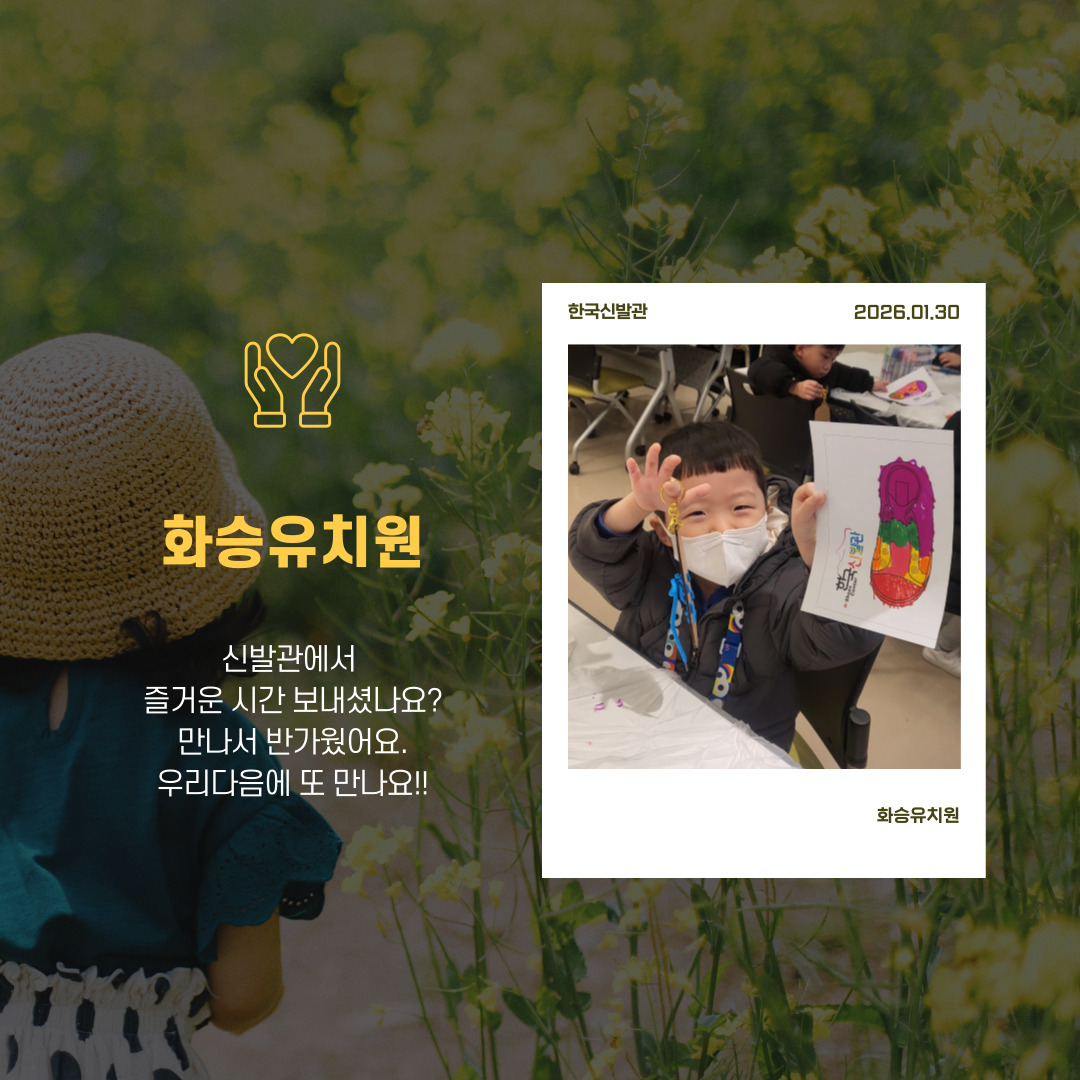 화승유치원에서 방문해주셨습니다.즐거운 추억으로 남길 바라며..다음 기회에 또 만나요.한국신발관에서 주중체험에 참여하실 단체/기관을 모집하고 있습니다.많은 관심부탁드려요(문의: (051)898-9300)