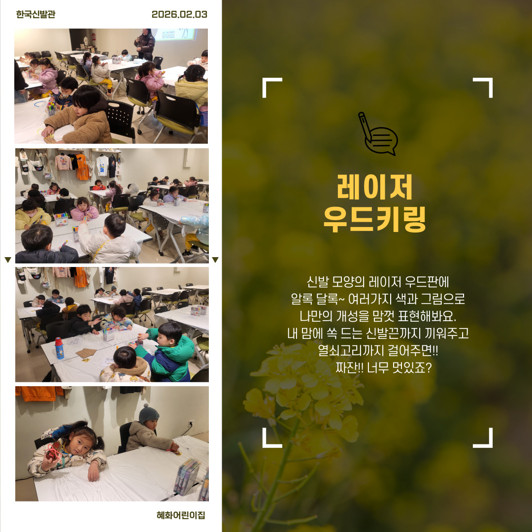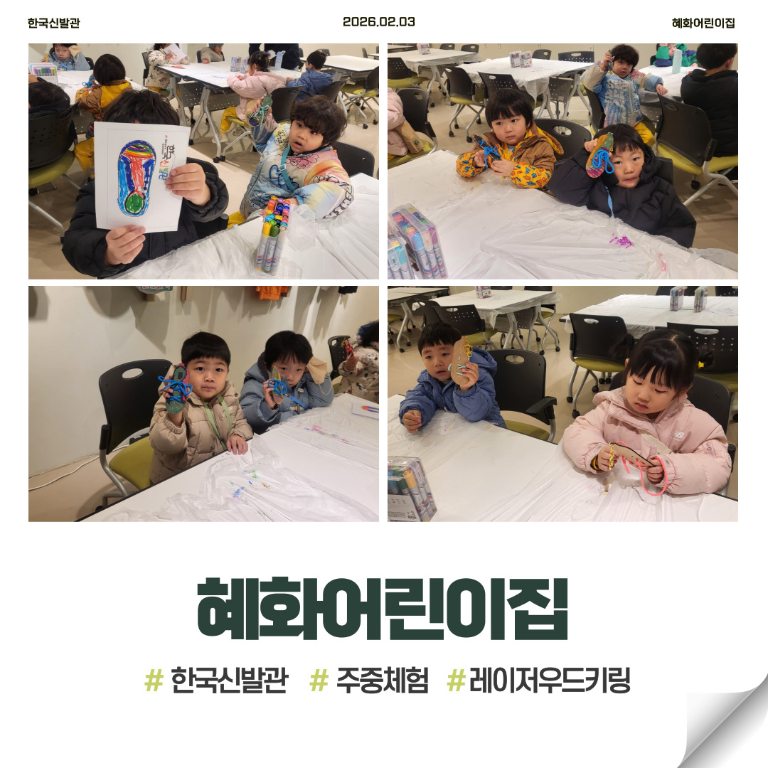 혜화어린이집에서 방문해주셨습니다.즐거운 추억으로 남길 바라며..다음 기회에 또 만나요.한국신발관에서 주중체험에 참여하실 단체/기관을 모집하고 있습니다.많은 관심부탁드려요(문의: (051)898-9300)#한국신발관 #부산테크노파크 #주중체험 #부산단체체험 #신발 #부산가볼만한곳 #개금
