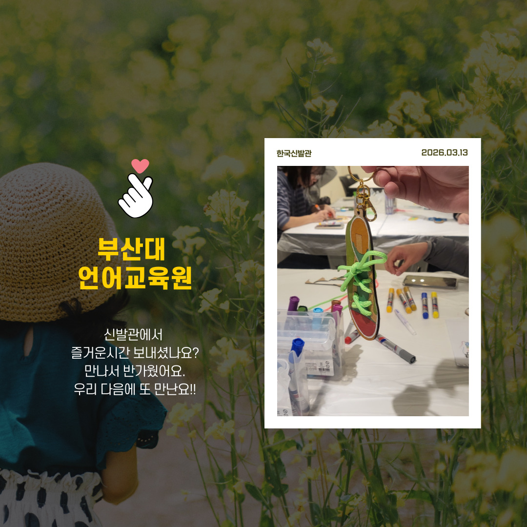 부산대언어교육원에서 방문해주셨습니다.즐거운 추억으로 남길 바라며..다음 기회에 또 만나요.한국신발관에서 주중체험에 참여하실 단체/기관을 모집하고 있습니다.많은 관심부탁드려요(문의: (051)898-9300)#한국신발관 #부산테크노파크 #주중체험 #부산단체체험 #신발 #부산가볼만한곳 #개금