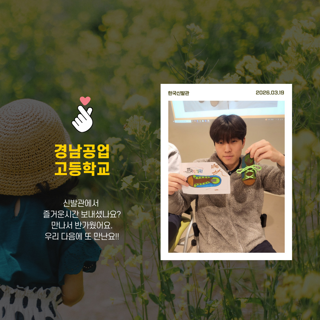 경남공업고등학교에서 방문해주셨습니다.즐거운 추억으로 남길 바라며..다음 기회에 또 만나요.한국신발관에서 주중체험에 참여하실 단체/기관을 모집하고 있습니다.많은 관심부탁드려요(문의: (051)898-9300)#한국신발관 #부산테크노파크 #주중체험 #부산단체체험 #신발 #부산가볼만한곳 #개금