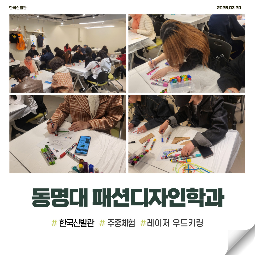 동명대학교 패션디자인 학과에서 방문해주셨습니다.즐거운 추억으로 남길 바라며..다음 기회에 또 만나요.한국신발관에서 주중체험에 참여하실 단체/기관을 모집하고 있습니다.많은 관심부탁드려요(문의: (051)898-9300)#한국신발관 #부산테크노파크 #주중체험 #부산단체체험 #신발 #부산가볼만한곳 #개금